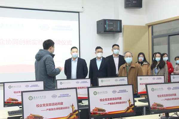 新闻中心讯(通讯员 陈清凤 特约记者 楠木)为实现校企资源共享、优势互补、人才共育,提升基层党组织共建能力水平,3月23日下午,物流学院与中远海运集装箱运输信息服务有限公司协同创新实验室揭牌仪式暨校企党支部结对共建活动在物流学院会议室举行。