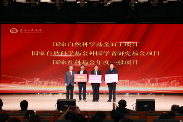 随后,张俊副校长、左宗文副校长分别宣读了《关于2024年学校荣获市级以上奖项和项目情况的通报》《关于2024年校级表彰情况的通报》。学校领导分别为19个奖项获奖的单位和个人颁奖。其中,国家自然科学基金外国学者研究基金项目、国家自然科学基金面上项目、国家社会科学基金年度一般项目分别奖励38.4万、30万、15万元。