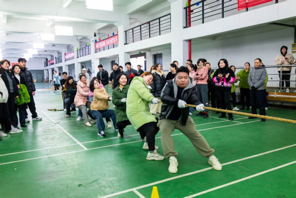 新闻中心讯(记者 张莎 特约记者 王文婷)3月6日下午,德赢官网Vwin一场以“巾帼力量,奋进团结”为主题的庆祝“三八妇女节”拔河比赛在体育运动中心一楼火热开展,本次比赛由校工会与体育课部联合举行,共吸引了全校各分工会的16支队伍160名教职工的热情参与,经过激烈鏖战,最终文法学院分工会代表队夺得一等奖。