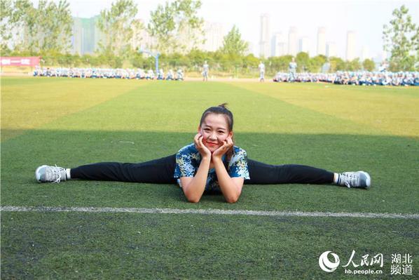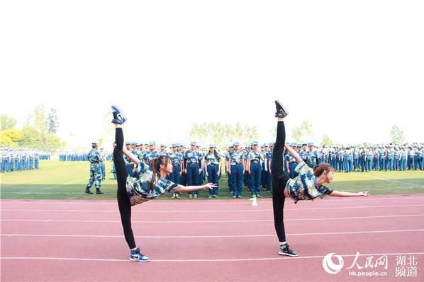 图为高校舞蹈专业新生穿军训服秀舞技美翻全场(王兴 摄)
