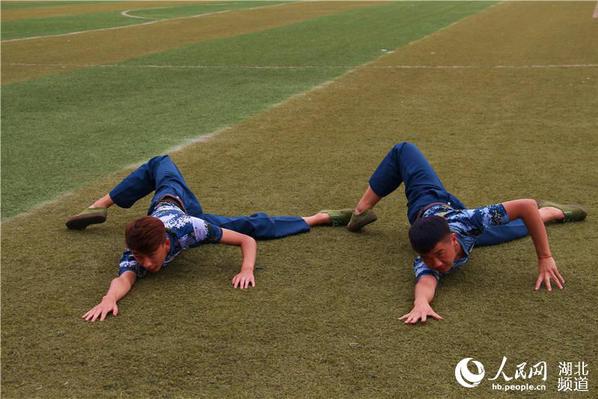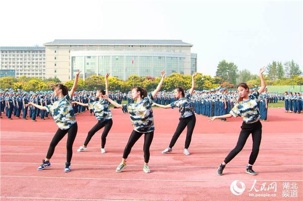 图为高校舞蹈专业新生穿军训服秀舞技美翻全场(孙欢欢 摄)