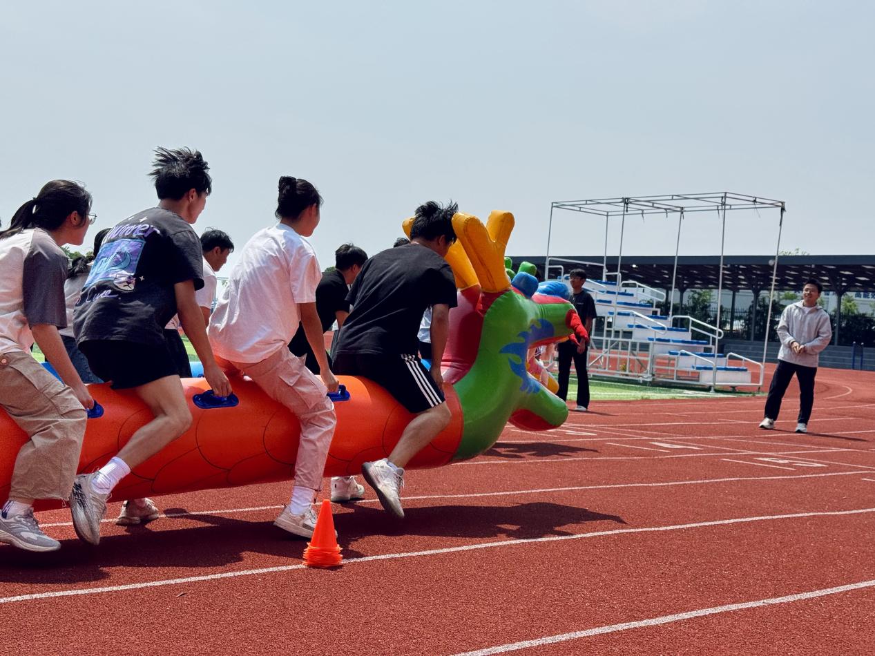 比赛当天,烈日炙烤着赛道,却燎不开少年们滚烫的热血。计算机与自动化学院的队员们如临战场,跨上色彩斑斓的“旱地龙舟”,眼神坚毅如鹰,身姿挺拔似松,只待发令枪响。随着一声清脆哨响划破长空,他们瞬间爆发出雷霆之势,整齐的口号声震彻云霄,脚下步伐疾如骤雨,整支队伍仿若一支离弦的箭,向着胜利的方向飞驰而去。