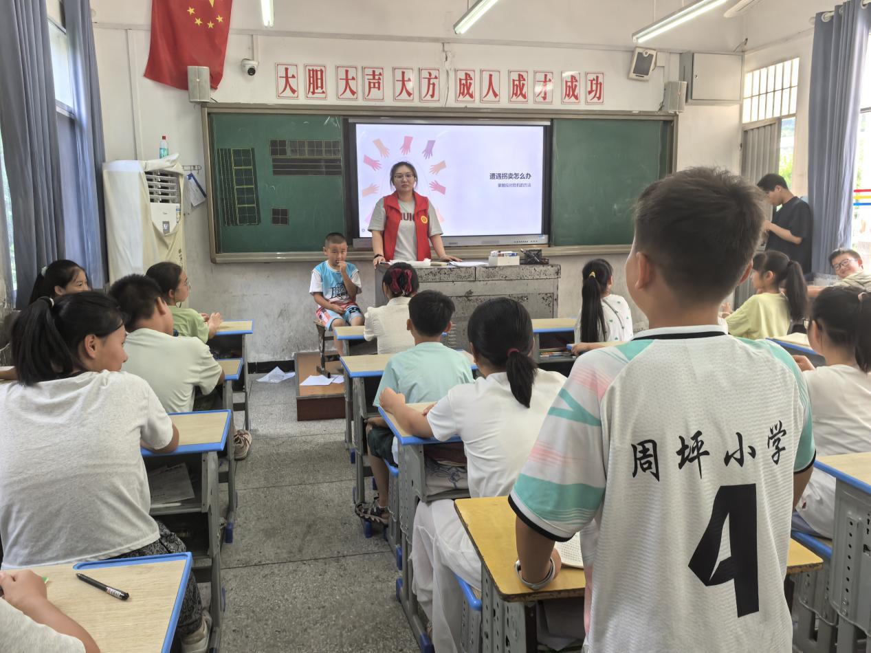 第一节课,由石斐然老师带着小朋友们开展“防拐卖”的趣味课堂,课堂上当提问到如何预防拐卖时,孩子们争先恐后的回答,“坚决不接受陌生人的食物和玩具”“遇到陌生人自称是爸爸妈妈的朋友来接自己时,一定要多问 “暗号”“一定要牢牢记住爸爸妈妈的电话号码和 110 报警电话”等,后面小朋友们又自发组织情景剧。下课后教室里,孩子们叽叽喳喳讨论着刚才的情景剧,那些关于警惕与勇敢的话语,正随着笑声飘向更远的巷陌,在秭归的午后酿成甜甜的安全感。