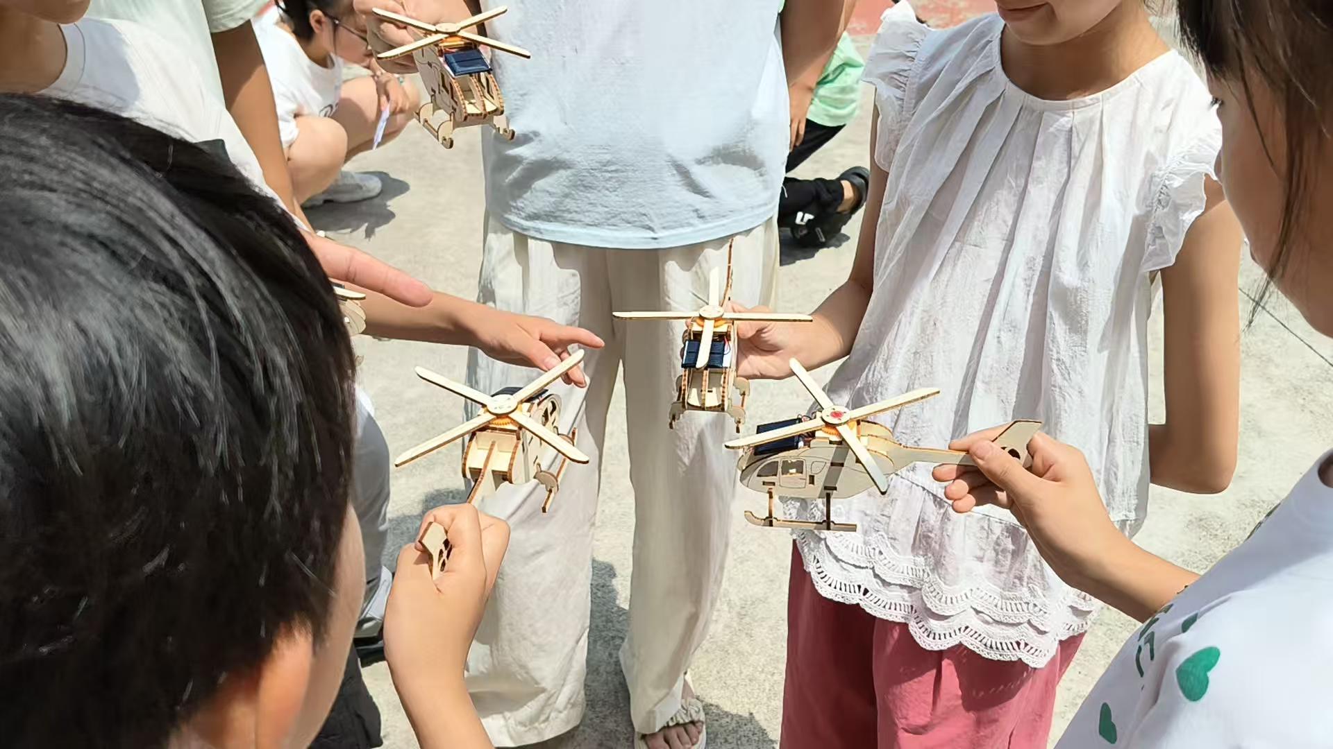 在爱心托管二班,李家兴老师正带着同学们探索科学的奥秘。老师首先向大家解释一些常见的自然现象提起大家的探索兴趣,随后给大家讲解了一些我们生活中常见科学原理。随后是实验小课堂,老师用磁铁给大家展示了指南针的工作原理,然后给大家讲解了太阳能转化为电能的原理。最后给大家分组拼装太阳能小车模型和太阳能直升机模型,虽然拼装过程有一定难度,但是每个团队都很团结,互相帮助探索正确的拼接方式。遇到困难时老师也在一旁细心指点鼓并给予帮助。最后每个小组都成功地拼出了作品。