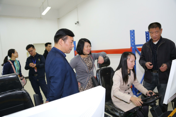 图为吕秀文组长、陈伟书记参观实训室