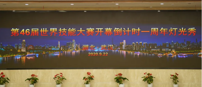 ↑第46届世界技能大赛开幕倒计时一周年武汉灯光秀活动启动仪式现场