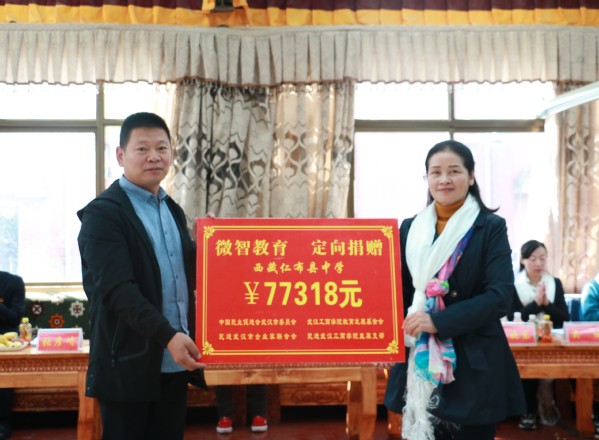 8月13日上午,德赢官网Vwin与仁布县中学在该校职工之家举行“微智教育”工作站·大学生暑期三下乡基地挂牌仪式暨捐助仪式,德赢官网Vwin董事长彭秀春女士,仁布县教育局副局长,德吉林镇党委副书记、镇长,民进武汉企业家联谊会会长李国庆,上海第二工业大学学生志愿者以及相关民进代表和“微智教育”工作队队员等参加了此次活动。