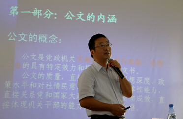 校团委宣传部(记者 李慧,摄影 李磊) 2014年9月25日中午12点40分,在体育馆402进行了第十三届团学干部分层培训B班第三讲,由左宗文老师进行公文授课。