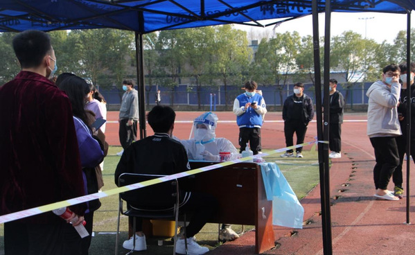 (学生排队做核酸)