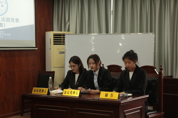 4月28号下午四点,文法学院法学学生党支部联合弘博法学会共同举办了“第一届模拟法庭比赛”的决赛。本次决赛于综合楼707教室进行,特邀请到了文法学院的李巧玲副教授,范红霞教授作为本次决赛的评委。