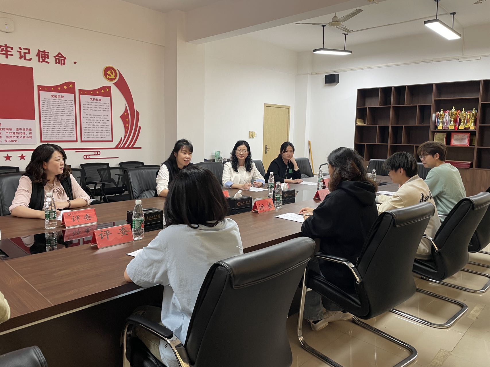 2024年5月11日中午12时许,由文法学院党总支书记陈敏书记领衔,文法学院分团委书记肖隽老师、新闻学学生党支部书记夏淑芳老师、广告网媒联合学生党支部书记冯媛媛老师、法学学生党支部书记李红老师共同组成的评委会于外语楼614教室观看9个参赛优秀作品,评选出一等奖:黄金晶,二等奖:王诗瑶,三等奖:粟慧,创意奖:张瑞琪、童羽哲并予以颁奖公布。现场陈敏书记发表讲话,对参赛同学擎红心写忠诚以贴近生活娓娓道来的方式展现自己和党的故事给予高度肯定,指出党的奋斗史就是一节最生动的思政课,希望同学们继续学党史党章、讲好红色故事。