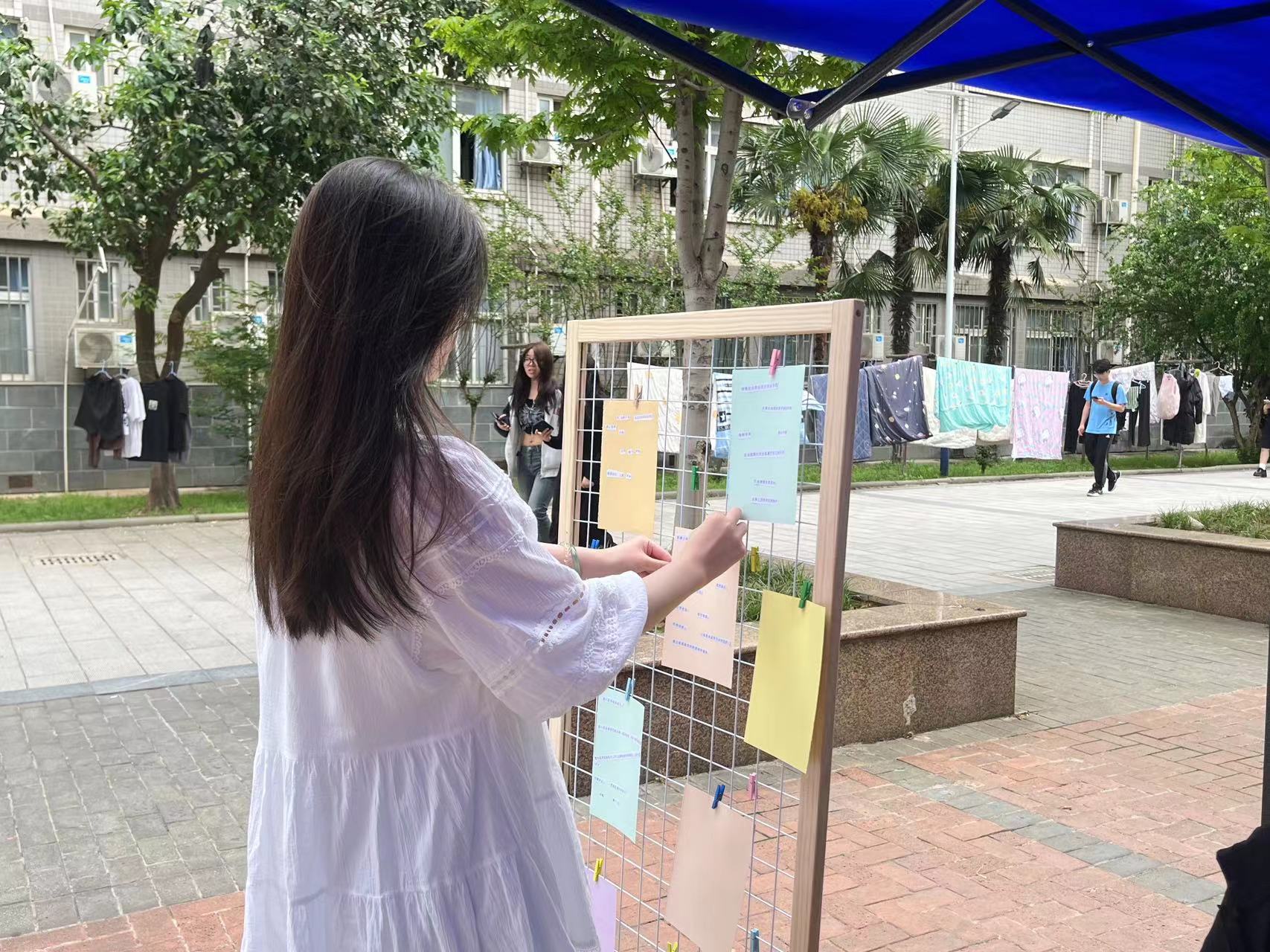 在活动实施过程中,注重细节把握和流程控制。首先,通过多渠道宣传,提高了活动的知名度和参与度。其次,通过法典,图片,示范例句等取材确保了活动的丰富性和多样性。本次活动以摆点的形式开展,活动负责人已提前于学校一食堂旁摆点预热活动。工作人员提前把准备好的拼诗材料备于桌面,包括法律条文、法律术语、法律谚语以及诗文选段等。他们细心地截取、撕成小块,然后同学们根据自己的创意和灵感,将这些碎片重新组合,拼贴成一首首充满春意的诗句。这些诗句将围绕春天的风物景致、所思所感进行创作,用法言法语、用诗文美段,让人感受到春天的温暖与生机。活动通过发布通知,海报宣传,帐篷摆点等形式进行预热,吸引了众多同学的关注,有效的提高了活动的参与度。