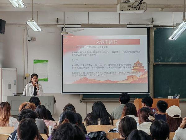 会议第四、五项,主讲人陈怡娜详细介绍了党校的学习安排,并着重强调了撰写入党申请书和思想汇报的格式要求及注意事项,并且公布了第十六期党校小组的分组情况。