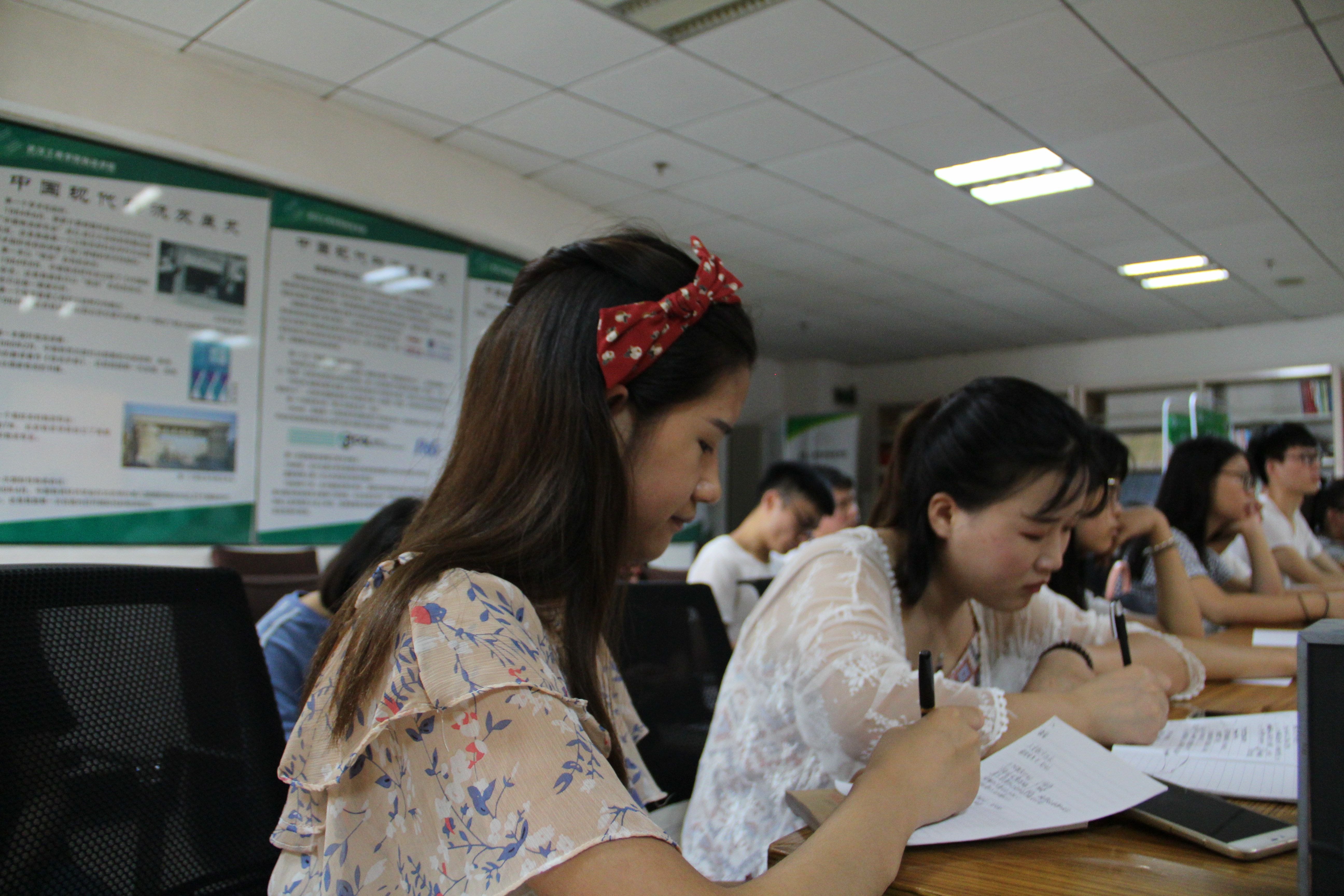图为党校培训班同学在做笔记