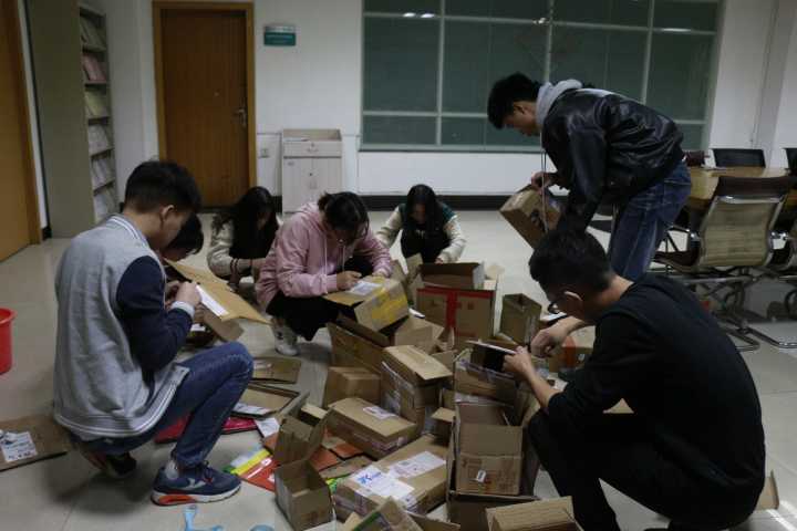 从10月30日开始,物流学院学生党支部成员兵分两路对快递盒进行绿色回收,一部分学生在学校五栋快递点附近设置“快递盒回收站”,为同学们提供黑色马克笔和拆封工具。同学们取完快递后可以在第一时间拆封快递,拿走货品,用黑色马克笔涂写覆盖个人信息,将快递盒留在“回收站”,从“起点”上减少资源浪费;另外一部分学生在各个宿舍进行快递盒回收,从“终点”做到物流包装的回收再利用。