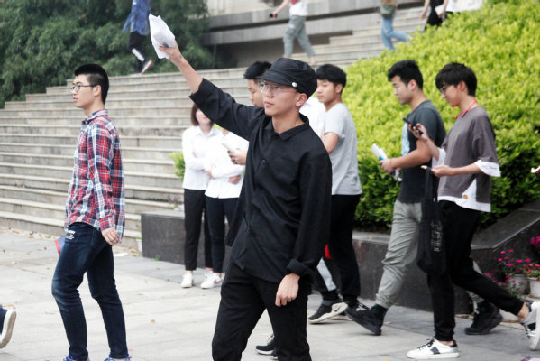 图为党支部学生正在表演快闪话剧《少年中国说》新青年学生抗议场景 摄影:叶炫志
