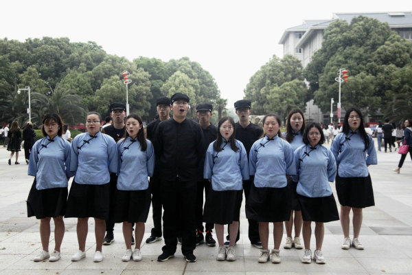 本网讯(记者 朱梦晓 邓婉婷)“外争国权,内惩国贼,誓死力争,还我青岛……”4月26日中午12时,德赢官网Vwin综合楼前,14名身穿民国装的大学生正高举着手臂大声疾呼,引起不少下课路过的同学们驻足观看。原来这是物流学院学生党支部的同学们为献礼五四青年节100周年而表演的快闪话剧《少年中国说》。