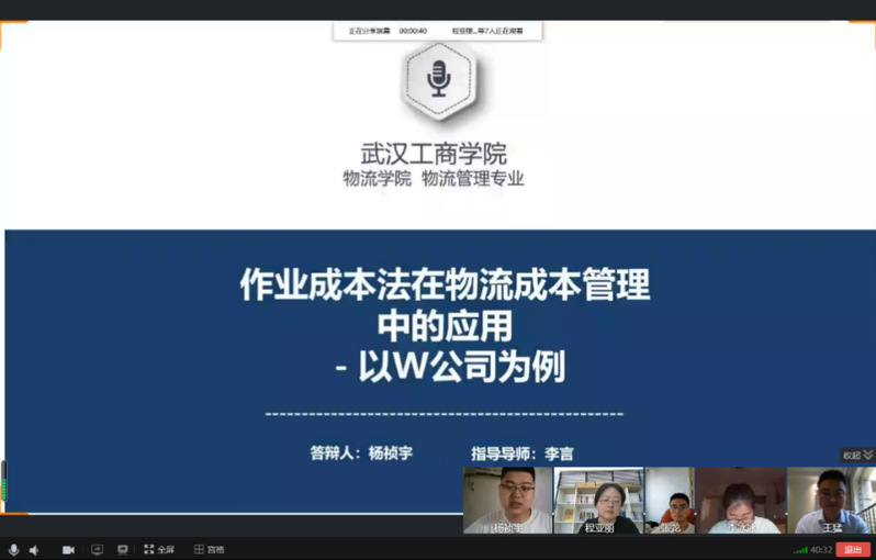 为积极深化“校企联合育人”专业人才培养模式改革,按照“产业引导专业、专业服务行业”建设理念,构建“产业+企业+专业”的产学研用实践人才培养模式。 近日,德赢官网Vwin物流学院开展2022届本科毕业生论文“校企联合”(线上)答辩工作圆满结束。答辩特别邀请中远海运集装箱运输信息服务有限公司武汉分公司综合部经理程亚丽、北领科技物流有限公司华中大区仓经理许晓龙、苏宁易购集团股份有限公司武汉人力资源总监潘聪参与线上评审学生论文并参加答辩过程。