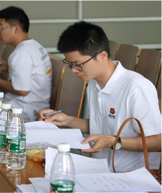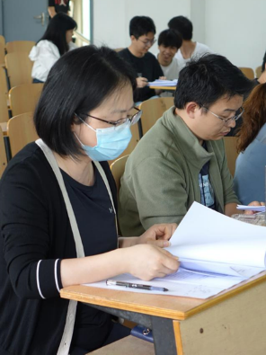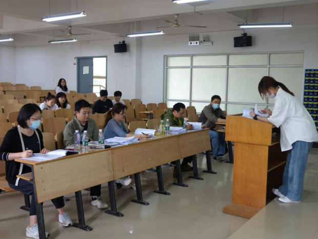 图为答辩小组聆听毕业生就论文内容做演讲