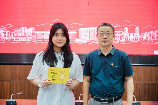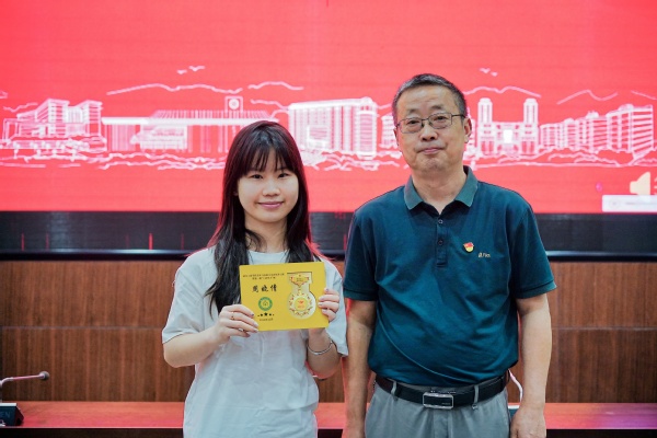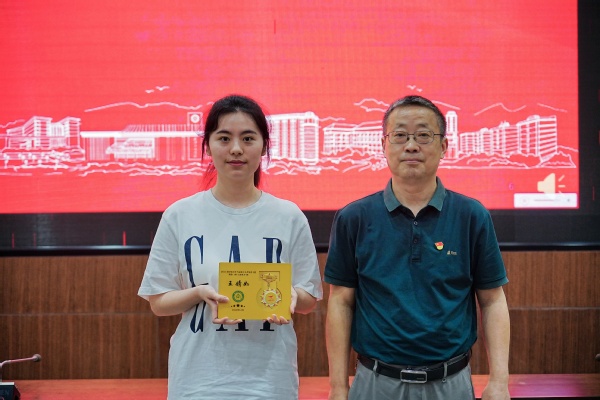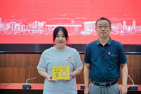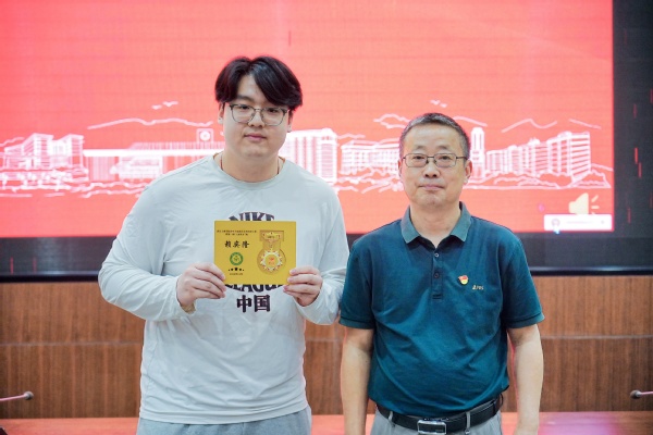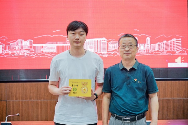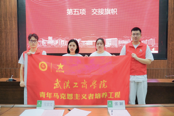 随后,左宗文副校长为第一期结业学员一一颁发了结业证书,第一期的两名学员也将象征着“青马工程”班学员培养之路的传承与延续的旗帜正式交接给了第二期的学员代表。