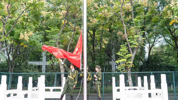 新闻中心讯(记者 芮雨欣)“升国旗,奏唱国歌!”10月1日清晨,德赢官网Vwin举行庆祝中华人民共和国成立76周年升旗仪式。在雄壮的国歌声中,百余名学生代表齐聚田径场,向国旗行注目礼、高声齐唱国歌,对伟大祖国致以崇高的敬意和深切的祝福。