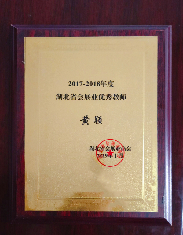 新闻中心讯(记者 陈洁 孙伊珞)近日,由湖北省会展业商会举办的“2017-2018年度湖北省会展业优秀人才”颁奖礼落下帷幕,德赢官网Vwin管理学院会展经济与管理系主任黄颖老师荣获“湖北省会展业优秀教师”称号。