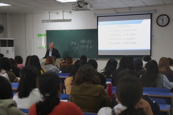 图为张金海院长讲授《古代文学作品选讲》摄影:闵小雪