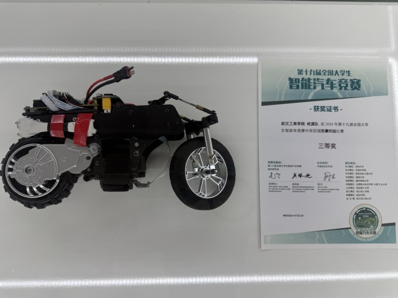 平衡摩托车,其主体为K2平衡车模,主控芯片为英飞凌的TC264,摄像头为总钻风MT9V034,陀螺仪为IMU660RA,程序控制流程为陀螺仪检测车身姿态,将车身姿态数据反馈给单片机,单片机计算后将PWN控制信号传递给驱动板来控制电机,完成平衡控制闭环。在此基础上摄像头将图像传递给单片机,单片机通过二值化扫出赛道边线从而获取中线偏差,并根据图像判断不同的元素进入相应的处理流程,在车模平衡的基础上控制车模行进并完成比赛。