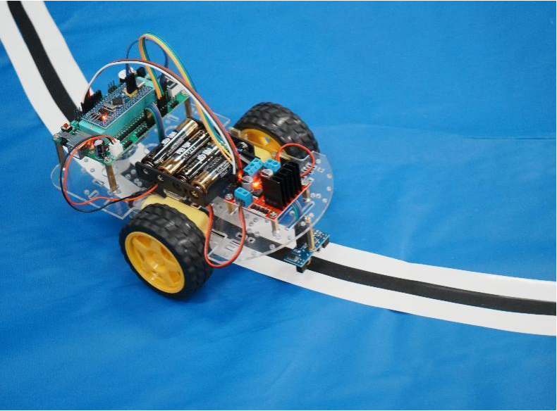 三轮电磁车,基于STC32G12K128处理器,以七路电感为循迹传感器。其中工字电感内部的导线切割信号线产生磁场,电感引脚就会有感应电动势,通过运放电路ADC获取赛道信息;小车使用电感差比和差加权算法计算赛道偏差,电感差比和差算法对弯道道型有着良好的亲和度,同时也具有很高的稳定性;同时利用串级PID算法实现对小车稳定、快速、准确的运动控制;基于F车模的结构,差速控制算法可使小车灵活、迅速的进行弯道处理,采用自制硅胶轮胎,可以一定速度在折线赛道上完成直道、弯道、环岛等复杂道路的自动循迹。