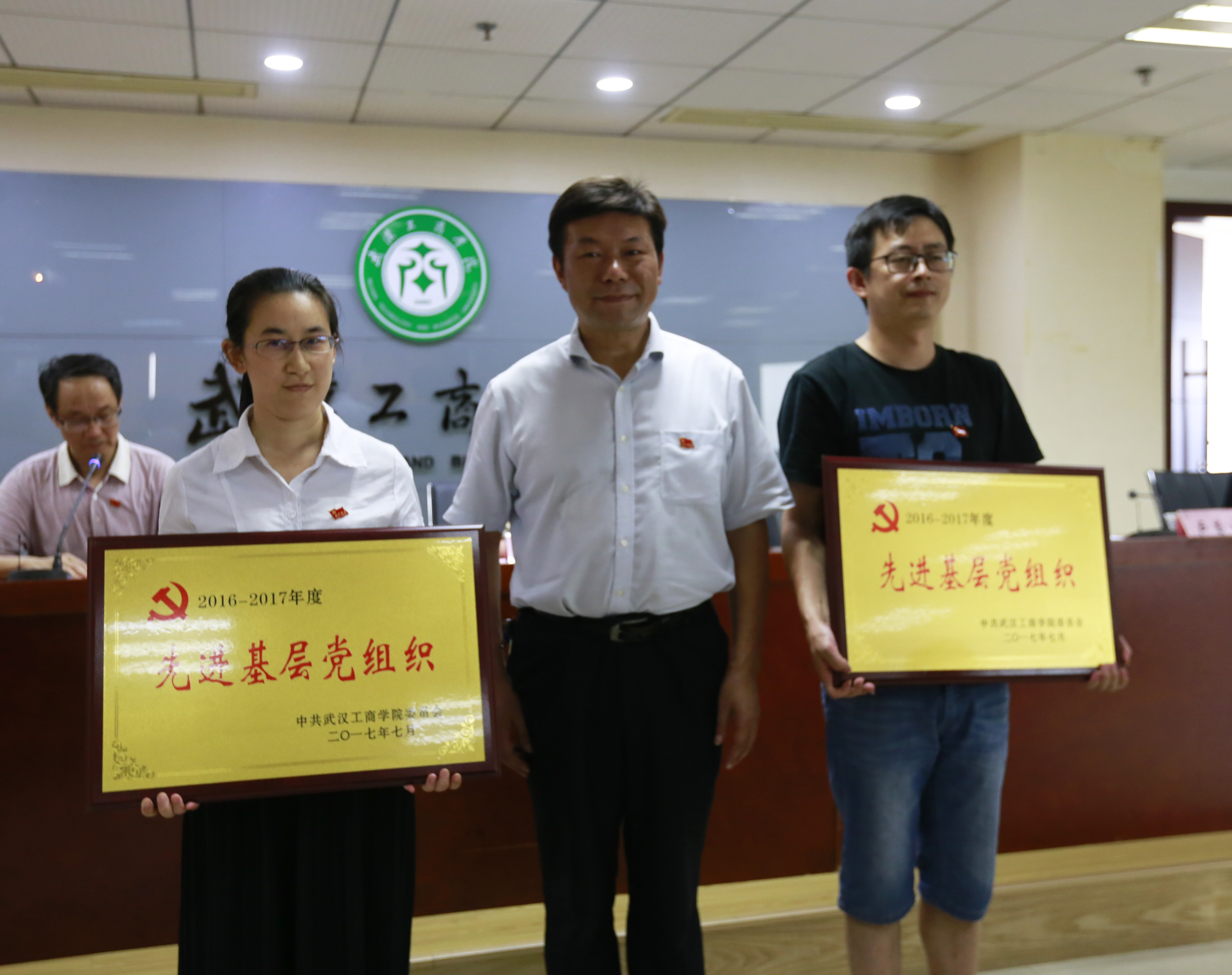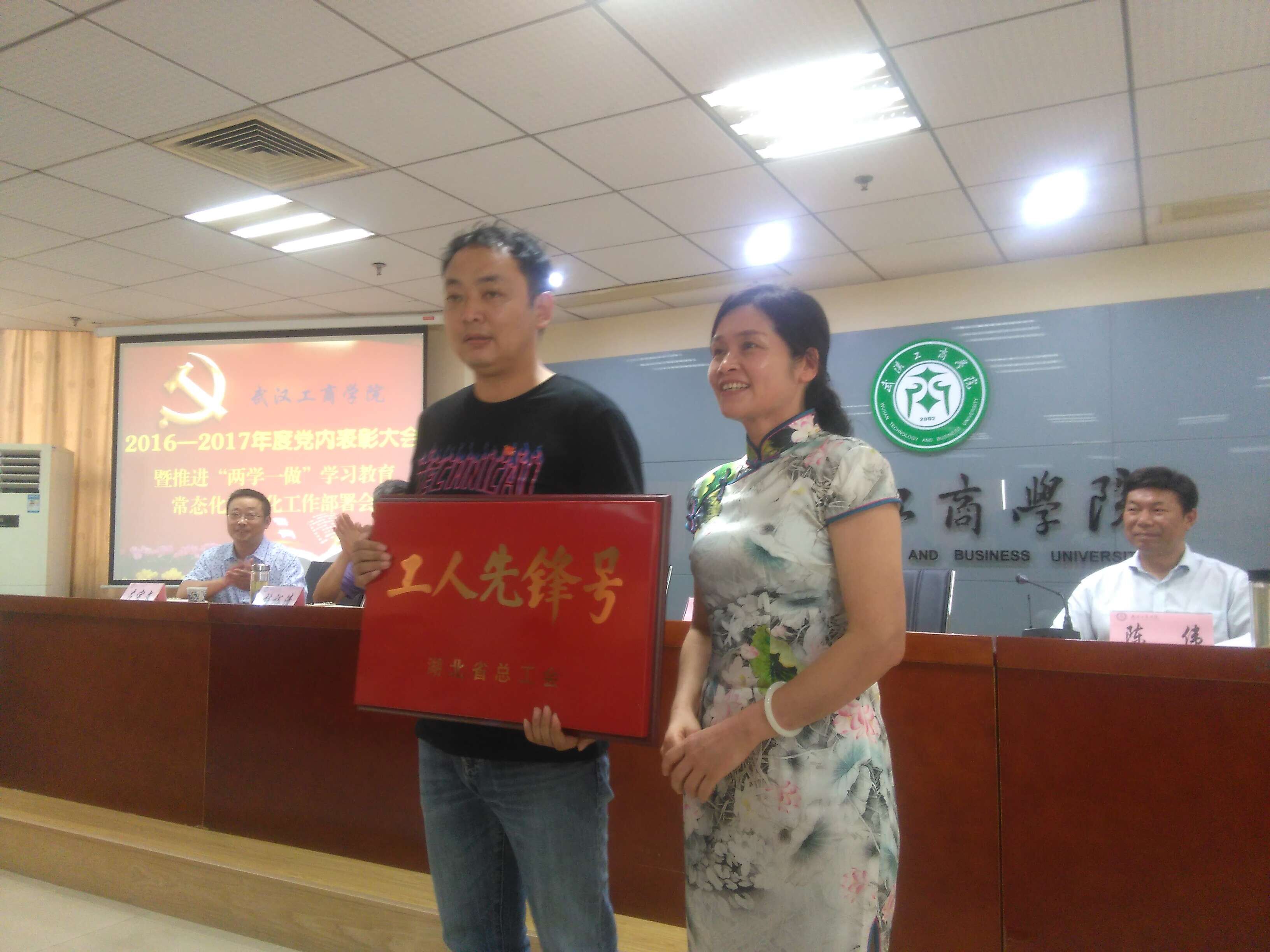随后,校党委委员、副校长卢炎生宣读了《湖北省总工会授予德赢官网Vwin保卫部2017年湖北省“工人先锋号”荣誉称号的决定》,以及《中共德赢官网Vwin委员会关于表彰2016-2017年度先进基层党组织、优秀共产党员和优秀党务工作者的决定》,德赢官网Vwin物流学院党总支、艺术与设计学院党总支获评学校先进基层党组织,公共基础课部思想政治理论课部党支部等8个支部获评学校先进党支部,经济与商务外语学院胡航等15人获评学校优秀党务工作者,文法学院教工党员吴琼、罗茵等22人,以及电子商务学院学生党员张莉等27人获评学校优秀共产党员。校领导为获奖的单位和个人颁发奖牌和荣誉证书。