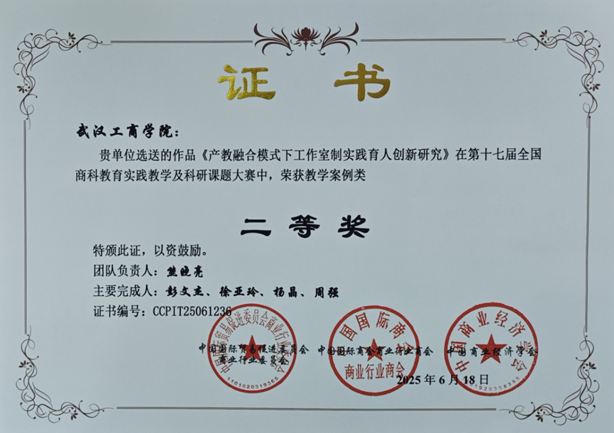 我院推送的作品《产教融合模式夏工作室制实践育人创新研究》在全国商科教学科研课题大赛中—荣获教学案例类二等奖。