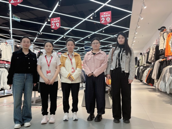 图为老师们与杉杉奥莱特步门店实习学生合影